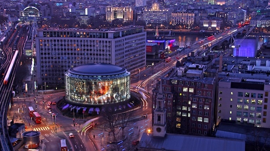 E’ una terribile giornata piovosa, tipicamente britannica, in una Londra già ingolfata dal più grande sciopero di sempre della metropolitana: diluvia e la città è paralizzata. La rotonda di Waterloo Bridge pullula di auto, ma sotto l’enorme cilindro che occupa lo spiazzo, si respira un’atmosfera molto diversa: c’è una sala accogliente con luci soffuse, divanetti di velluto, un bancone bar, musica in sottofondo. Pochissimi, anche tra i londinesi, conoscono questo posto ma quello tra il rumore dei clacson in superfice sembra solo un immenso cartellone pubblicitario rotondo, è un cinema.